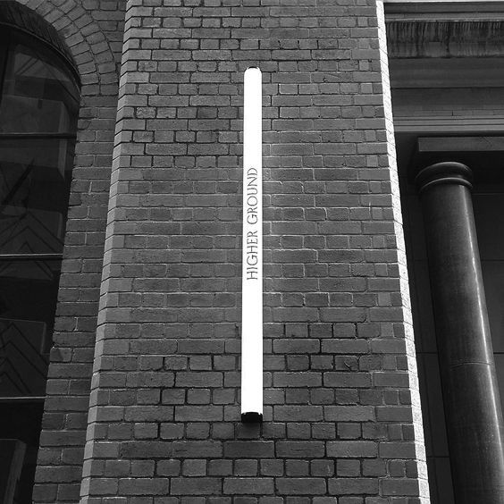 圓柱形門店簡單的標識發光,與磚墻的配合效果。