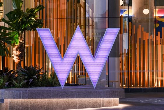 W酒店的W立體標(biāo)識(shí)多種標(biāo)牌的展現(xiàn)形式。
